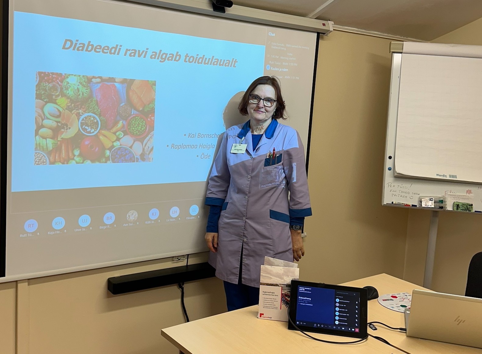 Rapla haigla diabeediõde Kai Bornschein  jagas kolleegidele teadmisi toitumisest, sest just  sealt algab diabeediravi. Selle huvitava loenguga ta lõpetas aastase eduka projekti „Õdedelt Õdedele“, mille eesmärk on tervishoiutöötajate teadmiste suurendamine Rapla haigla õdede ja eriõdede poolt😊